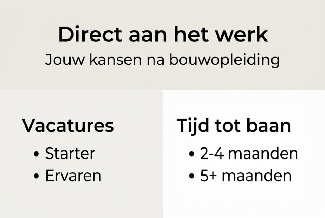 Wij spreken dagelijks met bouwbedrijven die zoeken naar gemotiveerde starters. En eerlijk gezegd: het personeelstekort maakt het voor jou makkelijker om een voet tussen de deur te krijgen. Maar het is niet genoeg om simpelweg beschikbaar te zijn.